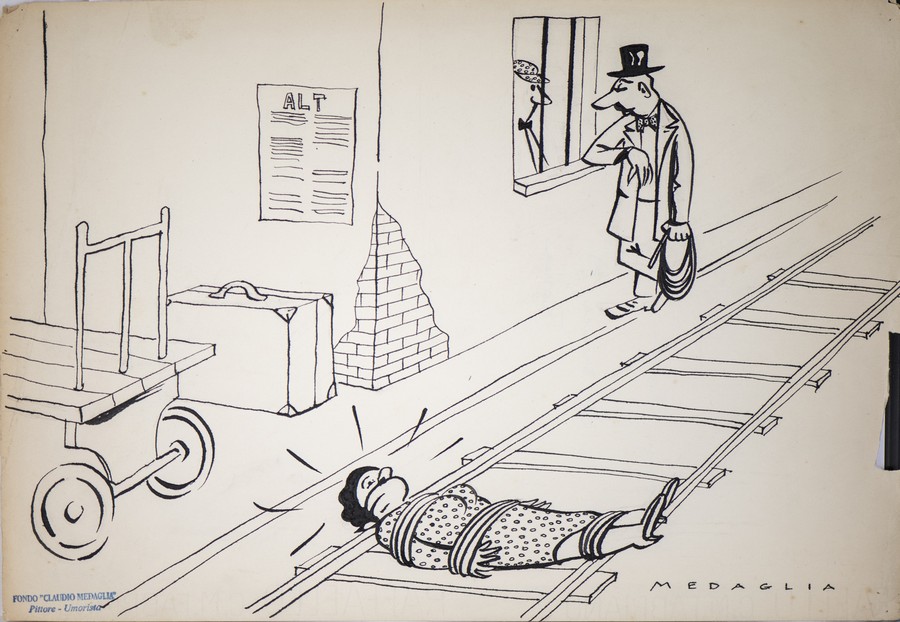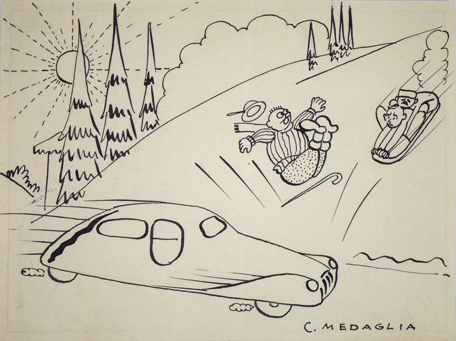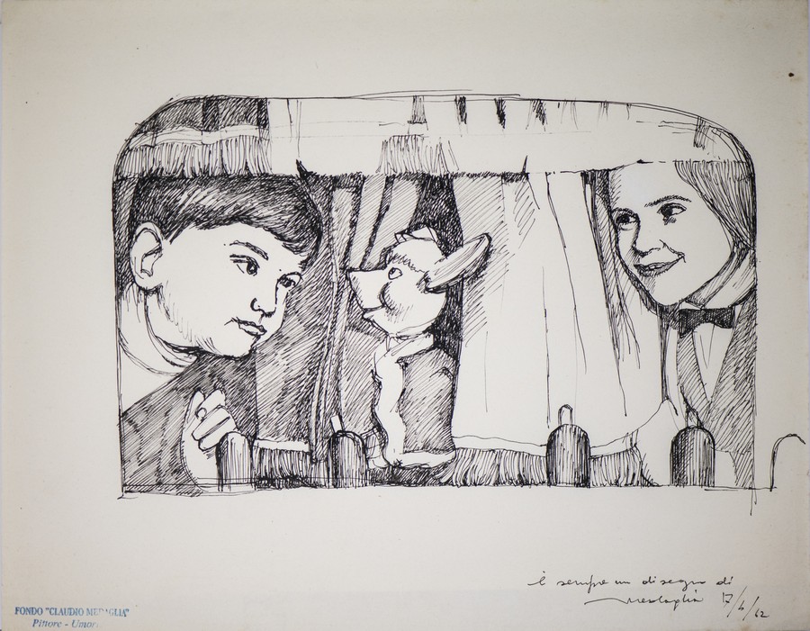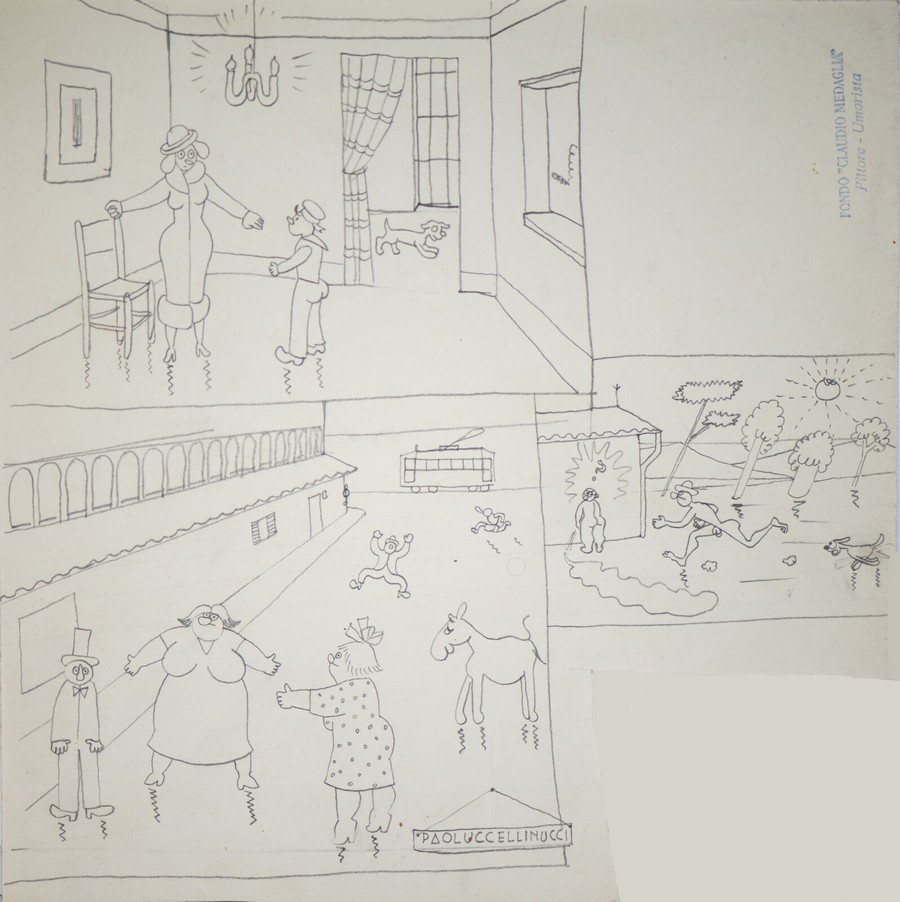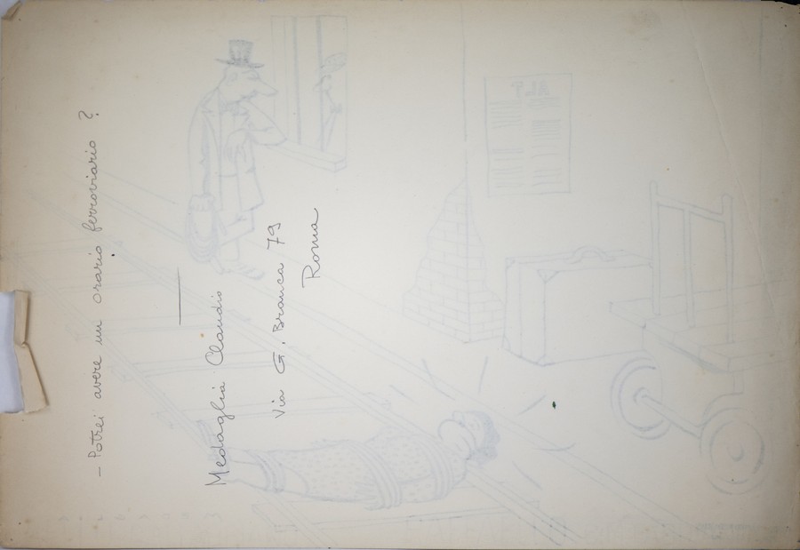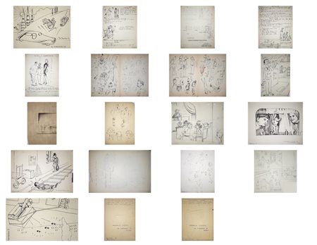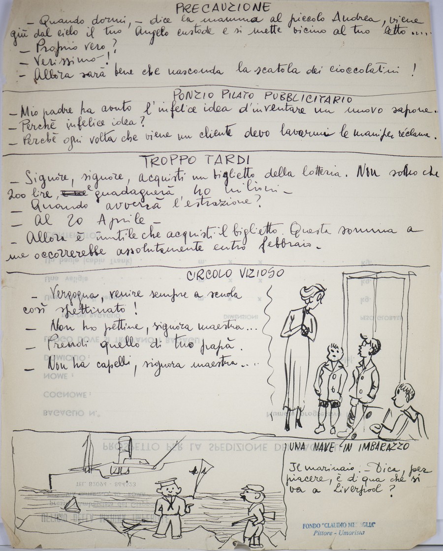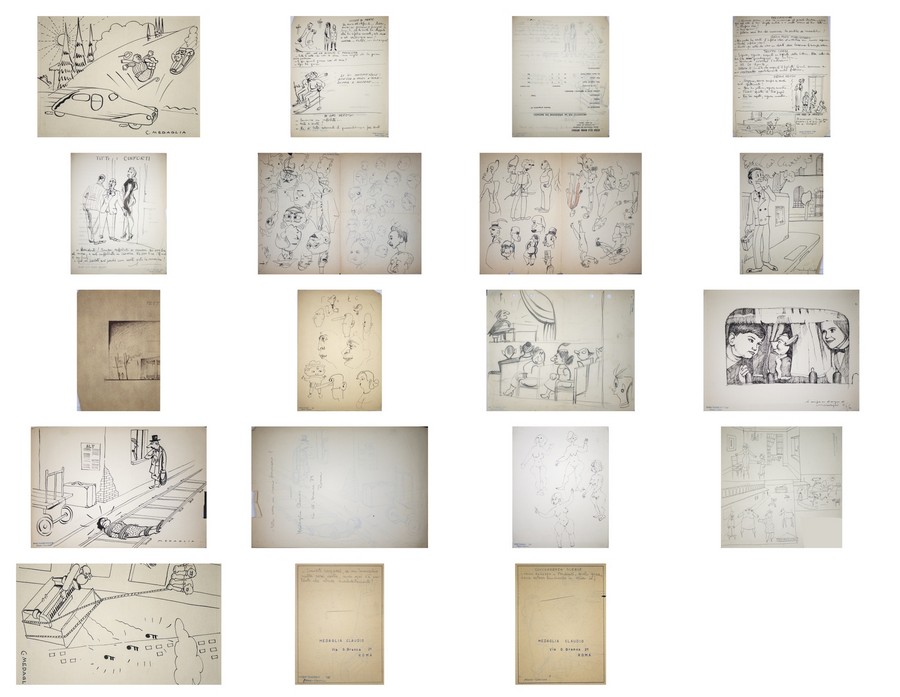 Medaglia Claudio (1919 - 1997) - Fogli di appunti per vignette, serie di bozzetti e disegni vari.