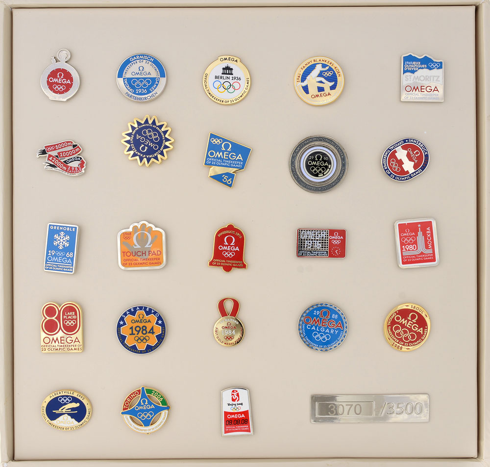 Lotto 221a | COMPLEMENTI PER OROLOGI OMEGA SET DI SPILLE EDIZIONE LIMITATA N. 3070/3500....