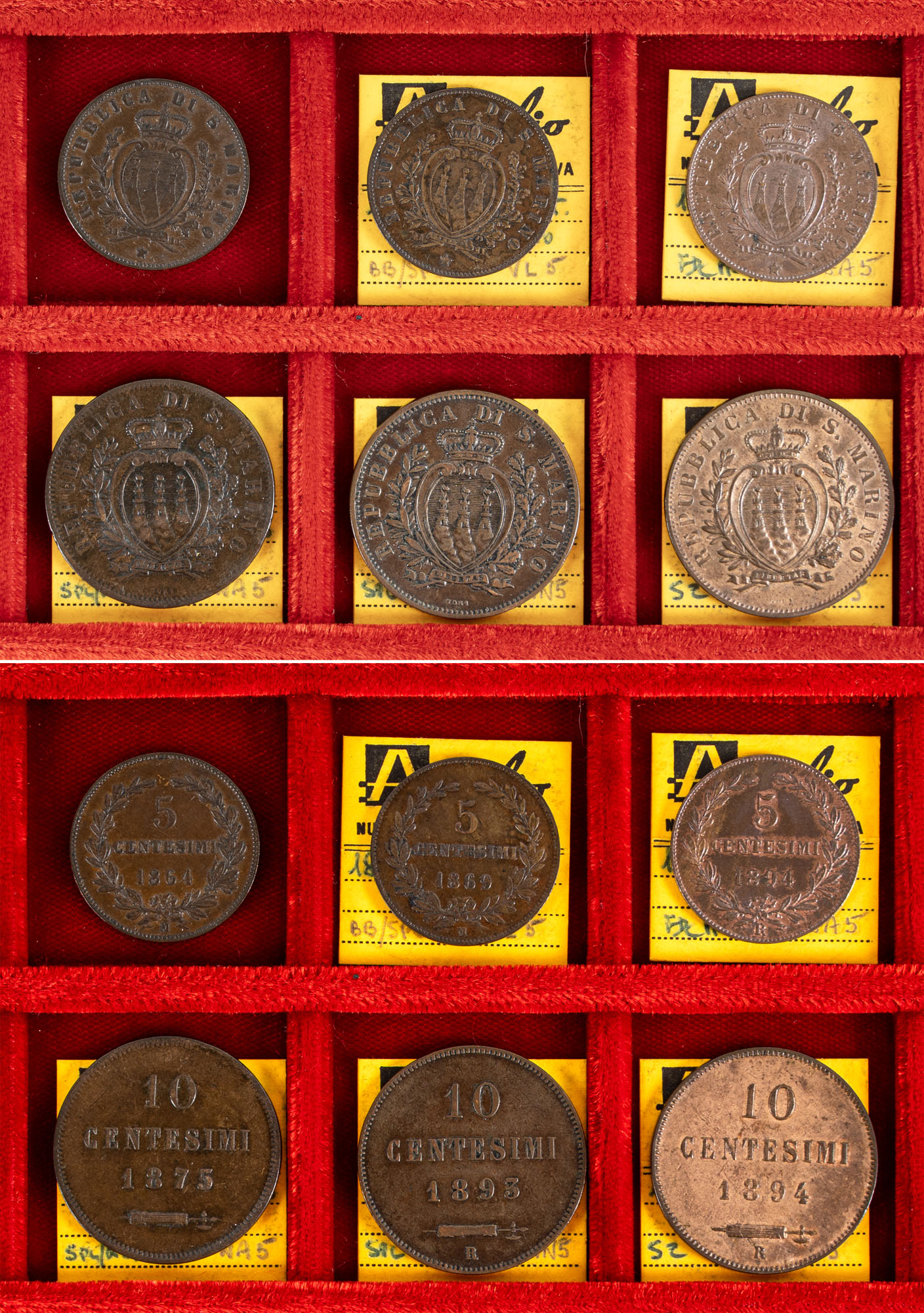 Lotto 8 | SAN MARINO - Vecchia monetazione (1864-1938) - Lotto 6 monete da 5 e 10 centesimi, I tipo.