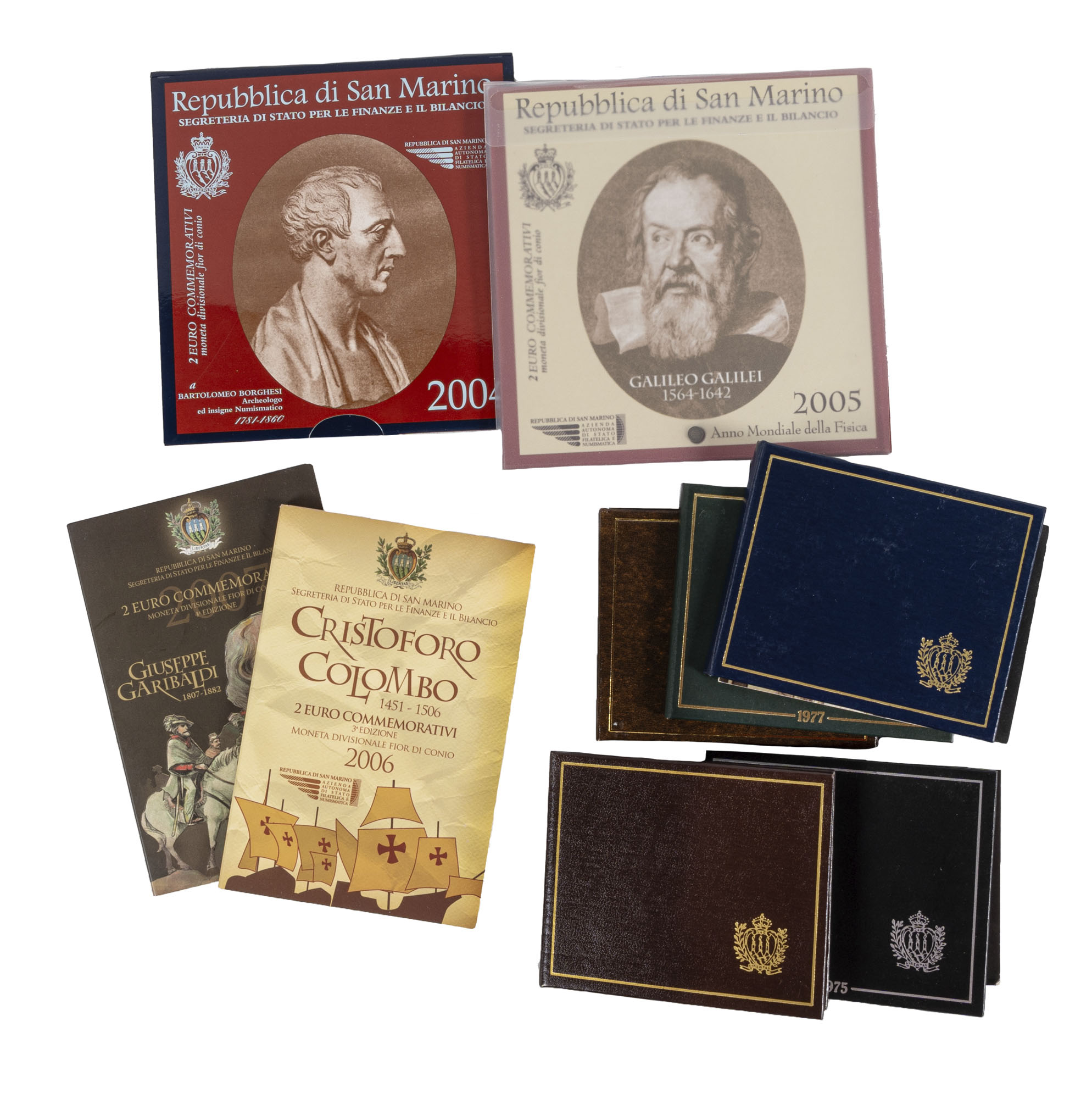 REPUBBLICA DI SAN MARINO - Nuova monetazione (1972-) - Lotto di 9 emissioni celebrative dal 1975 al 2005.
