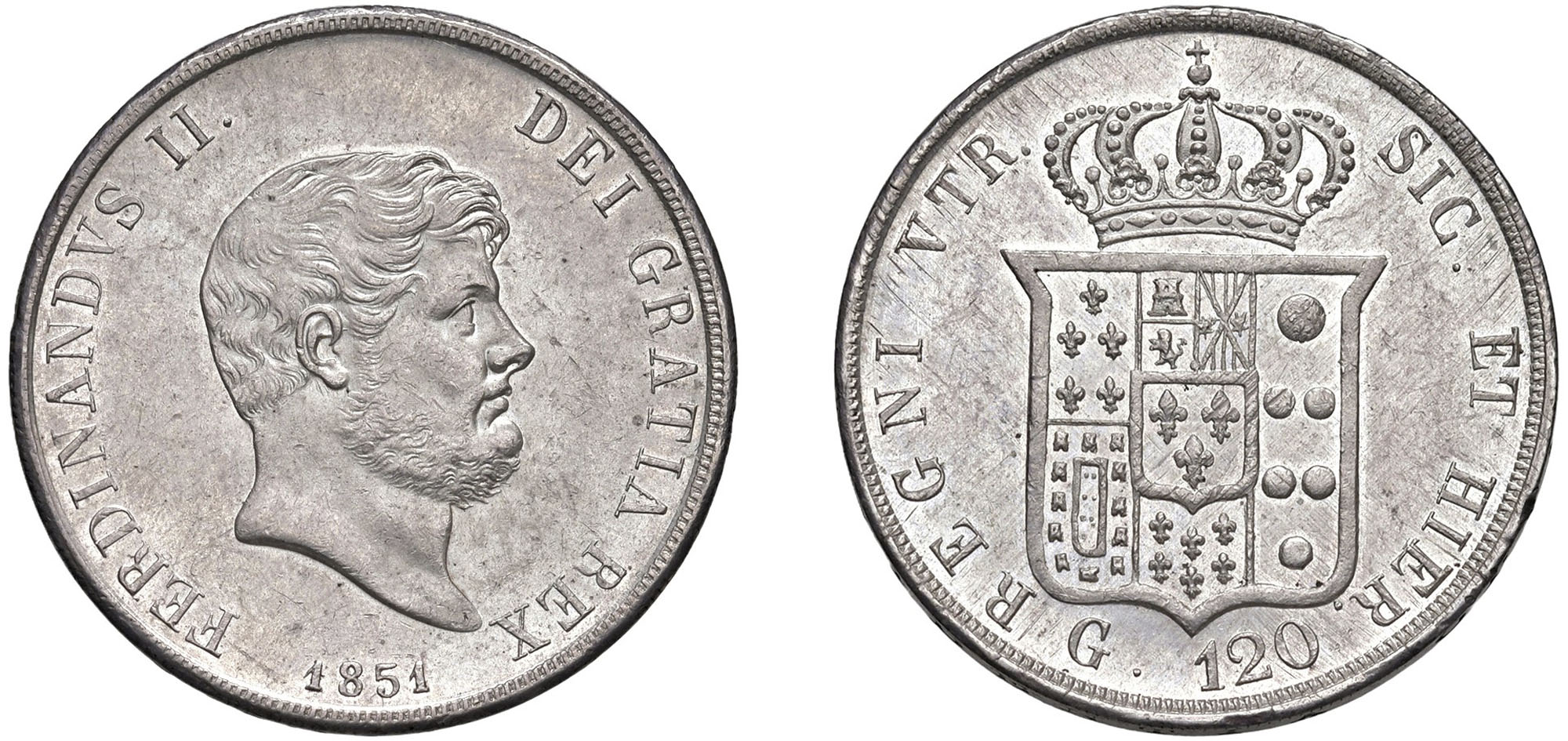 NAPOLI - FERDINANDO II (1830-1859) - Piastra da 120 grana, 1851.