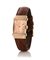 Cassa n. 645417 rettangolare in oro rosa 18 kt con anse coperte e vetro curvo. Quadrante rosa con indici applicati e secondi al 6. Movimento di forma n. 839124 a carica manuale. Quadrante, cassa e movimento firmati. Completo di fibbia in oro rosa originale ed estratto di registro.