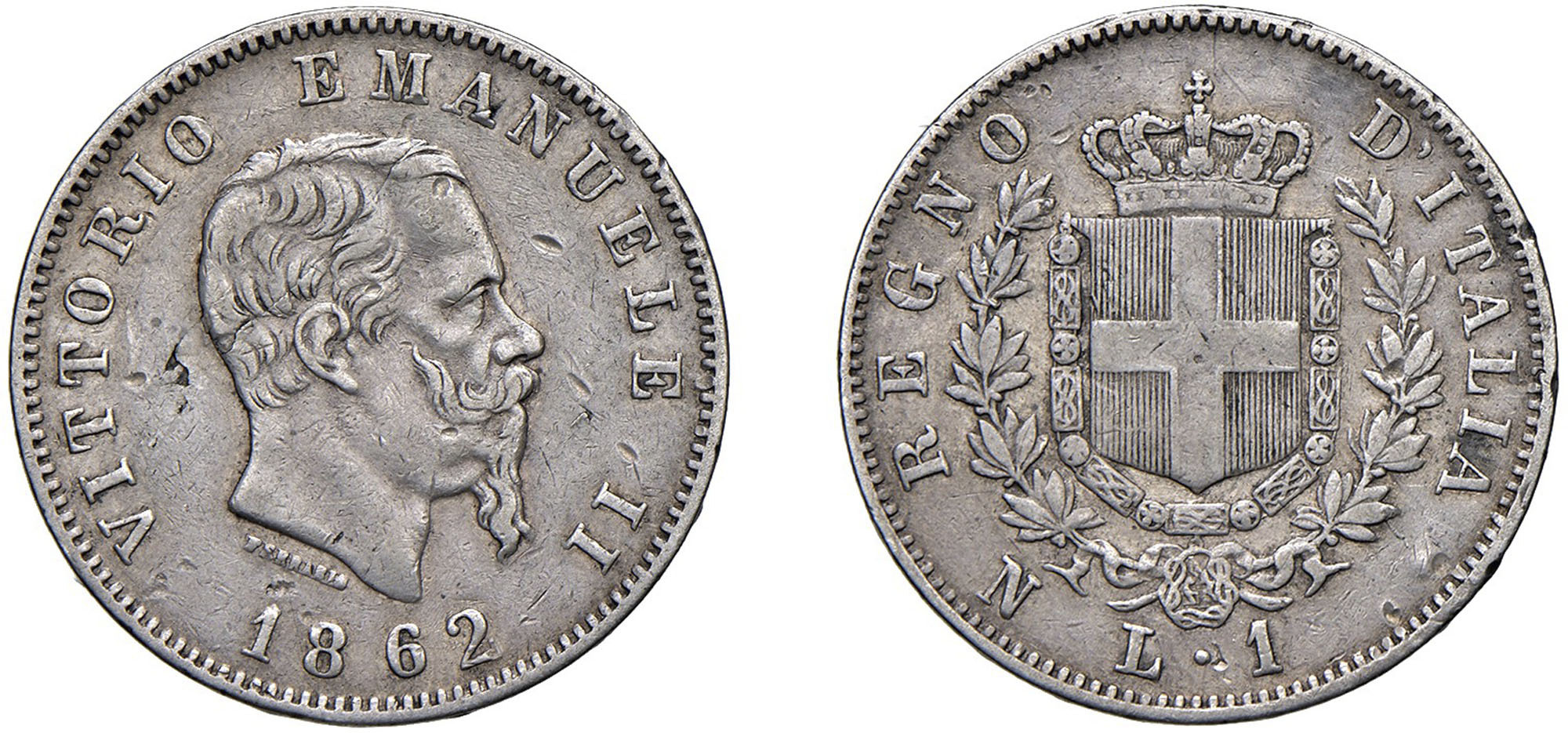VITTORIO EMANUELE II, Re d'Italia (1861-1878) - 1 lira 1862, Napoli.