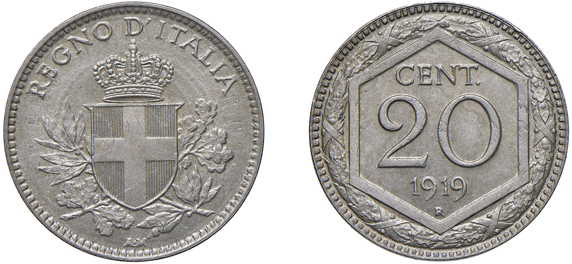 VITTORIO EMANUELE III (1900-1943) - 20 centesimi 1919, esagono.