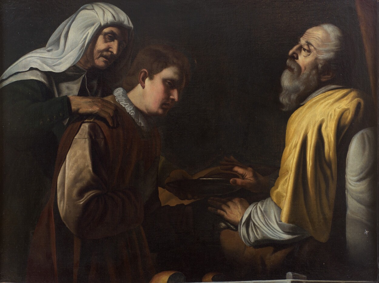 Filippo Vitale (1585 - 1650) Giacobbe e Rebecca ingannano Isacco olio su tela 100 x 130 cm