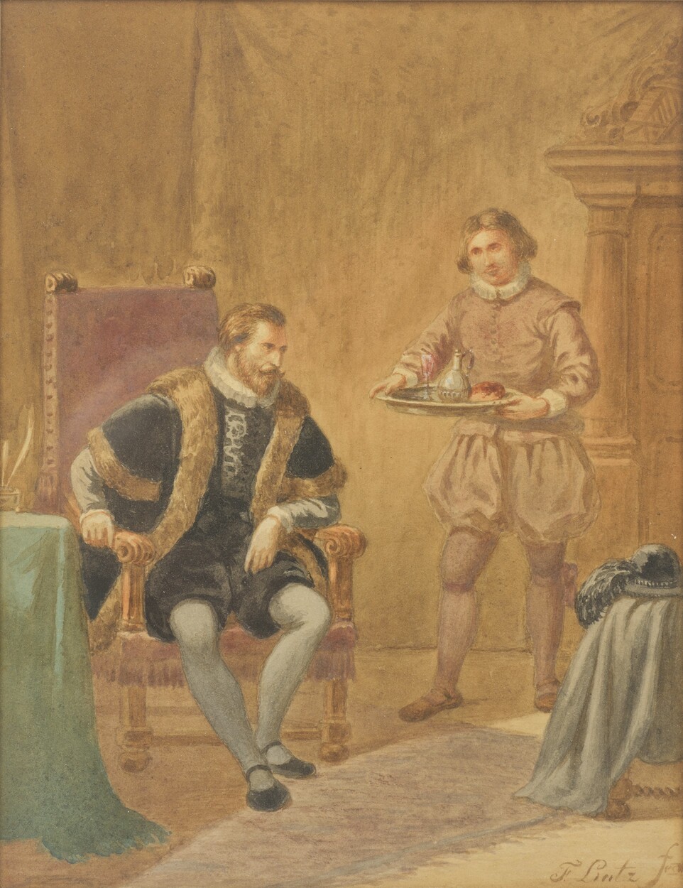 Frederick Lintz (1824 - 1909) Scena di corte Acquerello su carta 21 x 16 cm
