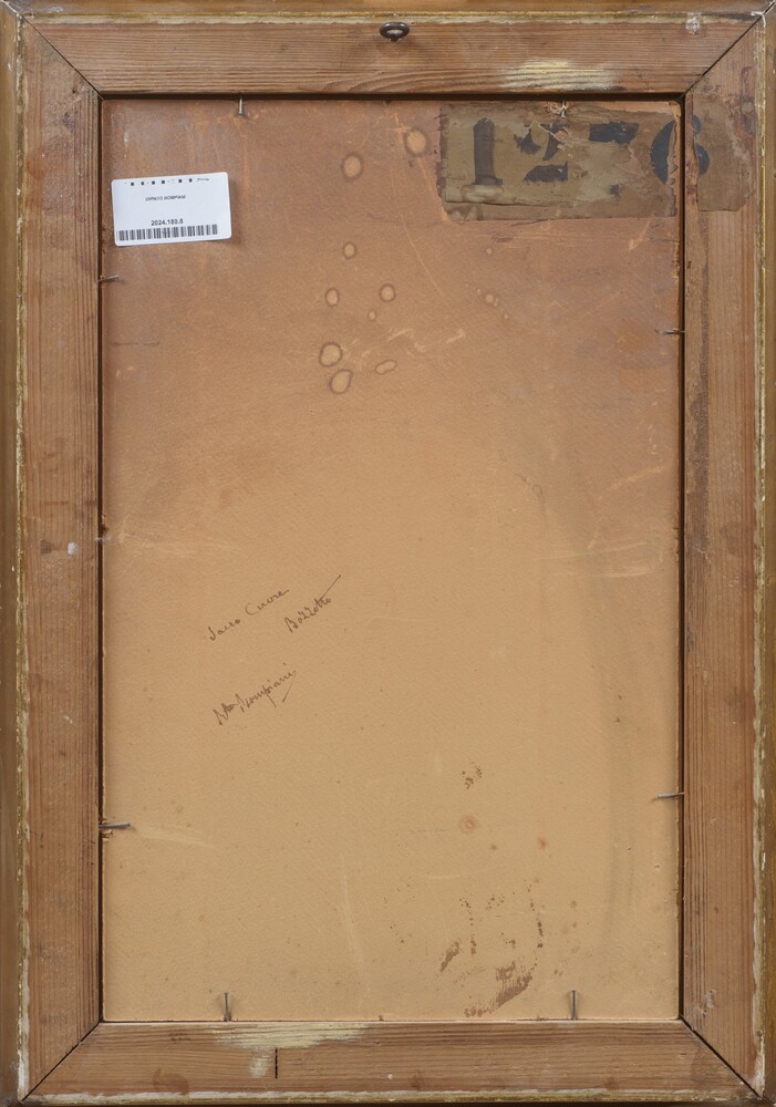 Firmato in basso a sinistra. Al retro reca iscrizione "Sacro Cuore - Bozzetto - Roberto Bompiani". In cornice.