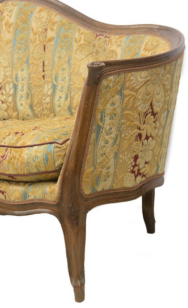 in legno di noce intagliato. Seduta e schienale tappezzato. Manifattura piemontese della metà XVIII secolo. Provenienza: dalla collezione d'arte di un importante Hotel di Via Veneto - Roma.