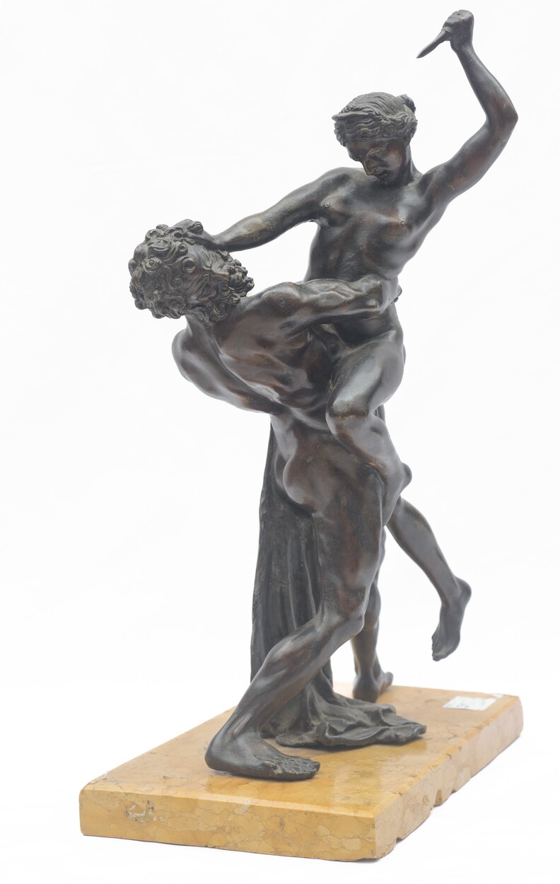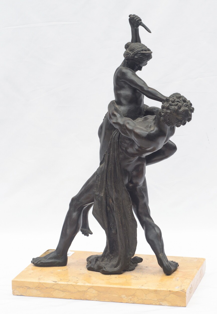 Scultura in bronzo, su basetta rettangolare in marmo. Firmata alla base E. Avolio.