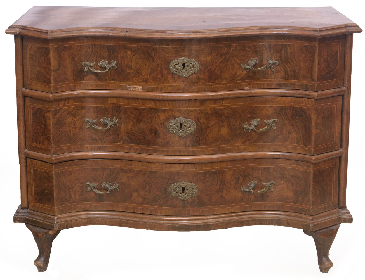 Comò a tre cassetti Ferrara, prima metà XVIII secolo 79 x 110 x 59 cm