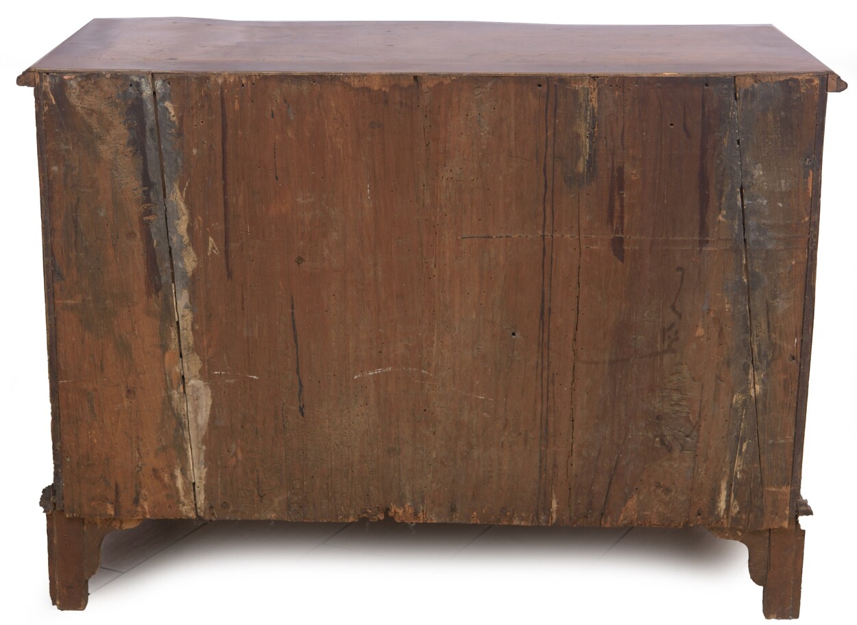 lastronato in noce e radica di noce. Fronte centinato, piano a carattere.