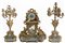 composto da un orologio e due candelieri a 5 bracci. Antimonio dorato con inserti in porcellana policroma di Sevres. Quadrante in porcellana con numeri romani. Rotture, mancanze e meccanica da revisionare
