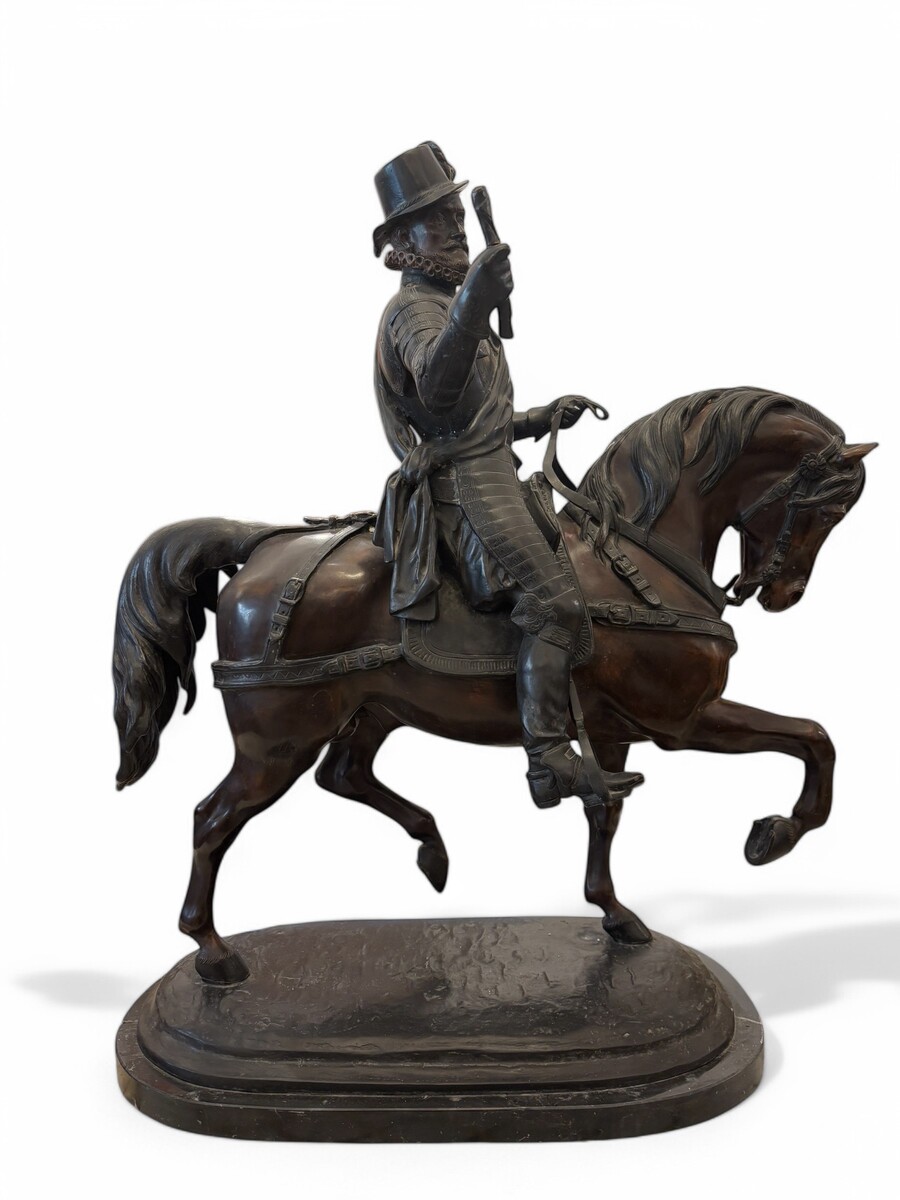 James Hunt (XIX - XX secolo) Personaggio a cavallo fine XIX secolo h 84 x 80 x 46 cm