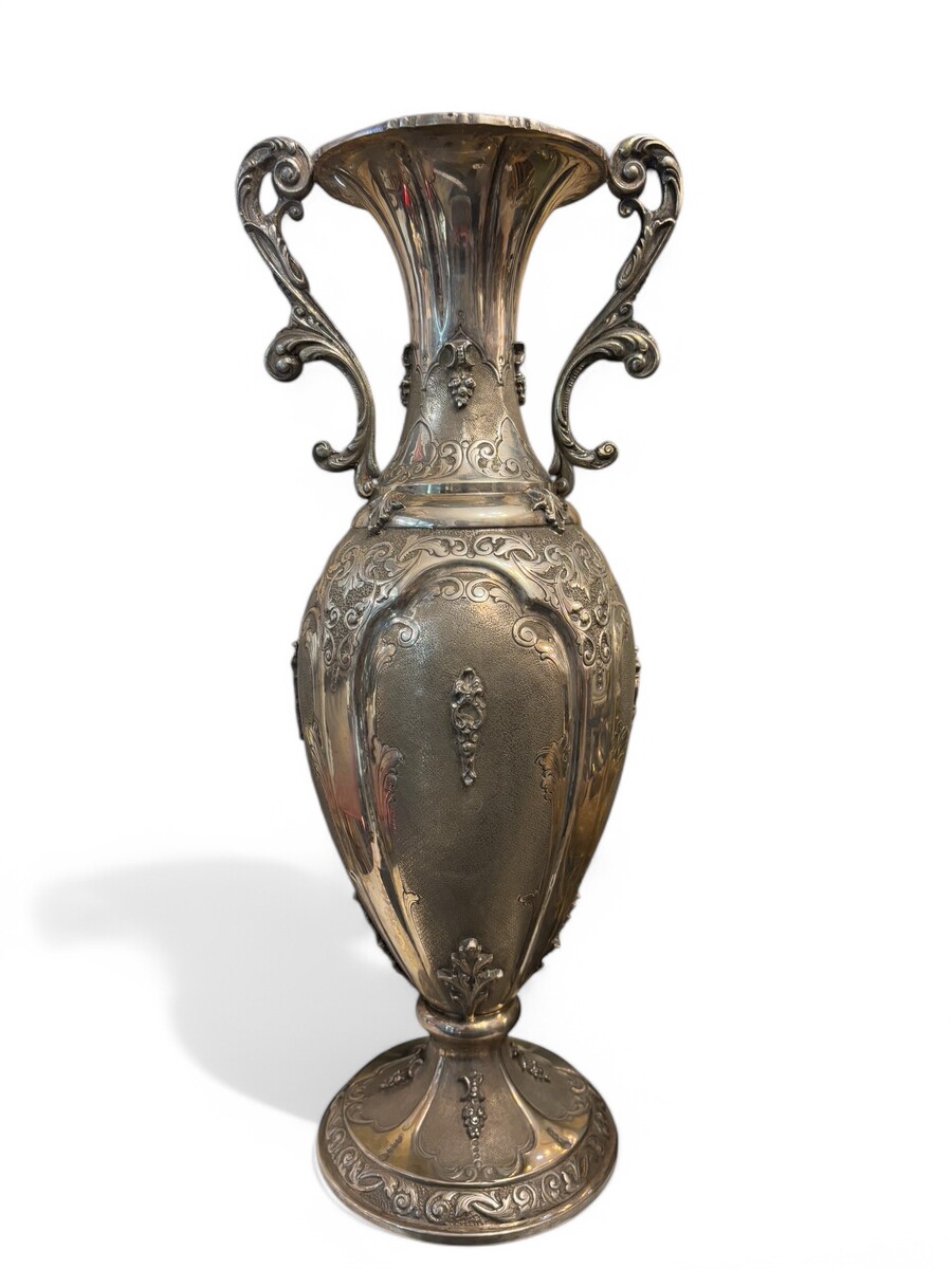 Precedente Lotto 152 Successivo Dams Casa D'aste - Via aurelia 61/63, 00165 Roma Arte Classica & Art Nouveau Arte Classica & Art Nouveau giovedì 20 marzo 2025 ore 15:00 (UTC +01:00) Vaso in argento a doppia ansa h 40 cm Con decorazioni incise e a sbalzo. Peso: 1160 gr