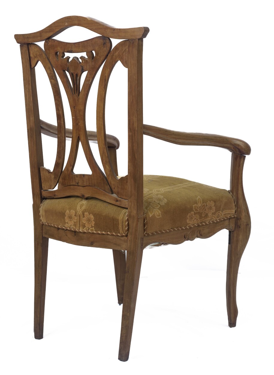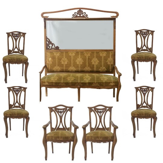 composto da un divano con specchiera sullo schienale, dieci sedie e quattro poltroncine. Difetti.