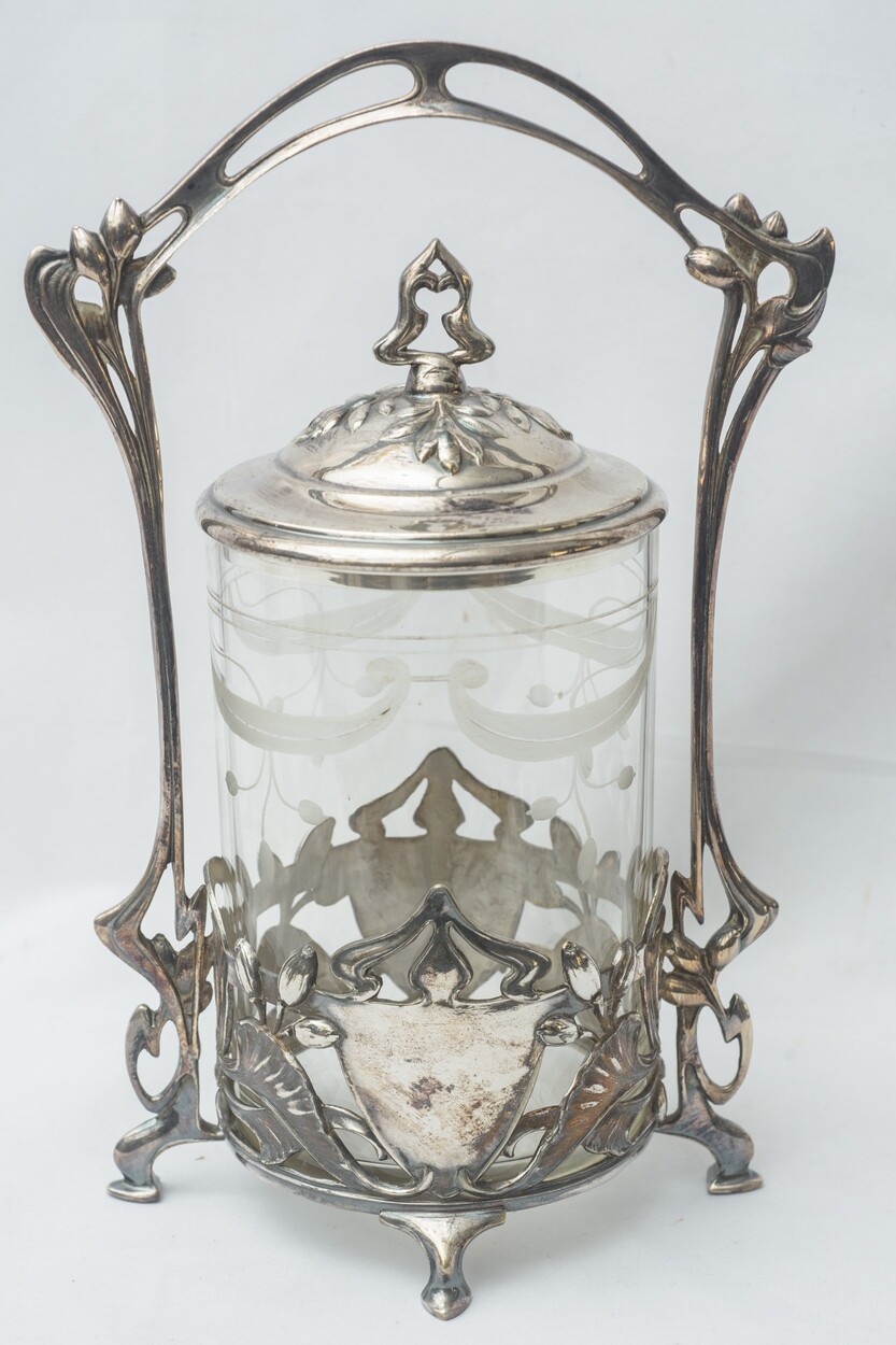 Lotto 167 | Porta sottaceti anni '20 del XX secolo metallo argentato e vetro 28 x 15 cm