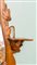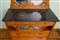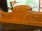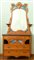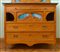 Cassettiera a tre cassetti, calzatoia centrale e ripiani laterali con alzata a specchio e coppia di mensole laterali. In legno di acero con inserti scolpiti a decorazioni floreali; marmo portoro e inserti in pasta vitrea color celeste. Dimensioni cassettiera: 106 x 120 x 65 cm; dimensioni specchiera 143 x 121 cm.