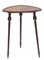 Tavolino da appoggio trilobato a tre gambe, con parchettatura a motivi floreali in diverse essenze (noce, arables e legni vari di frutto). Firmato.