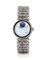 C. titanium with case back secured by screws, reeded beaded sides and sapphire crystal. D. alabaster with luminous indexes and hands, subsidiary dials for day, date, and month with leap year indicator, phases of the moon at 12. M. quartz. Titanium bracelet with hidden clasp. Dial, case, movement and bracelet signed.