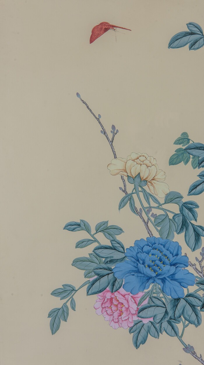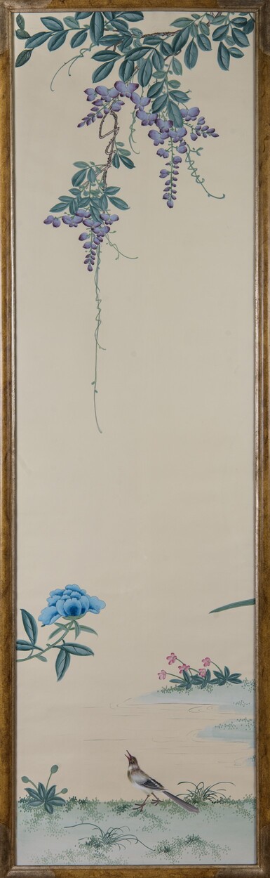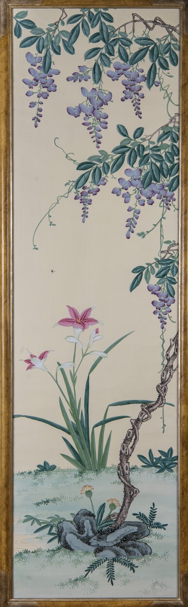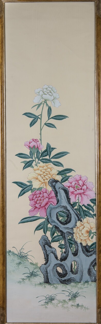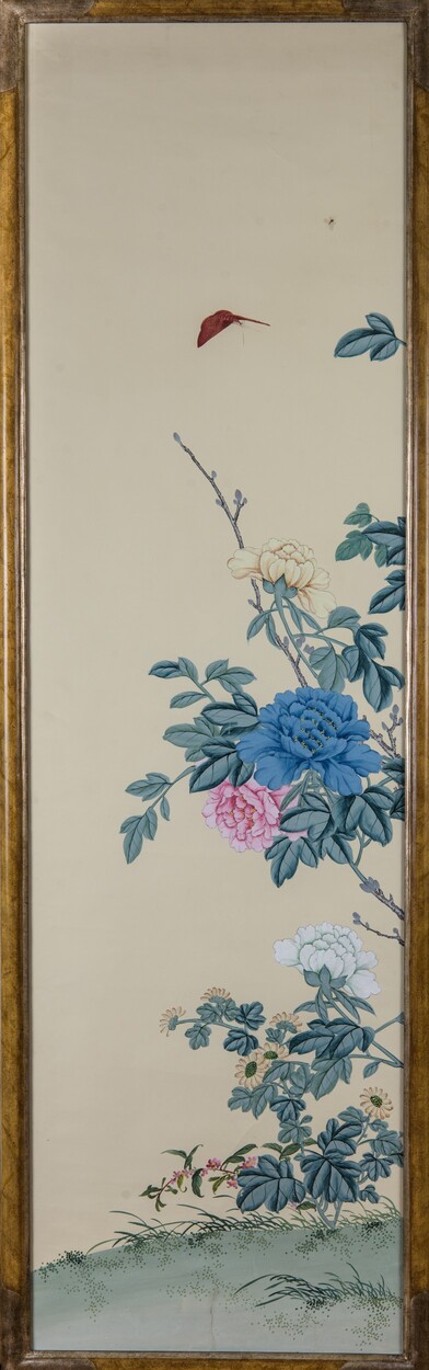 Scuola europea. Pannelli dipinti su carta decorati a motivi floreali.