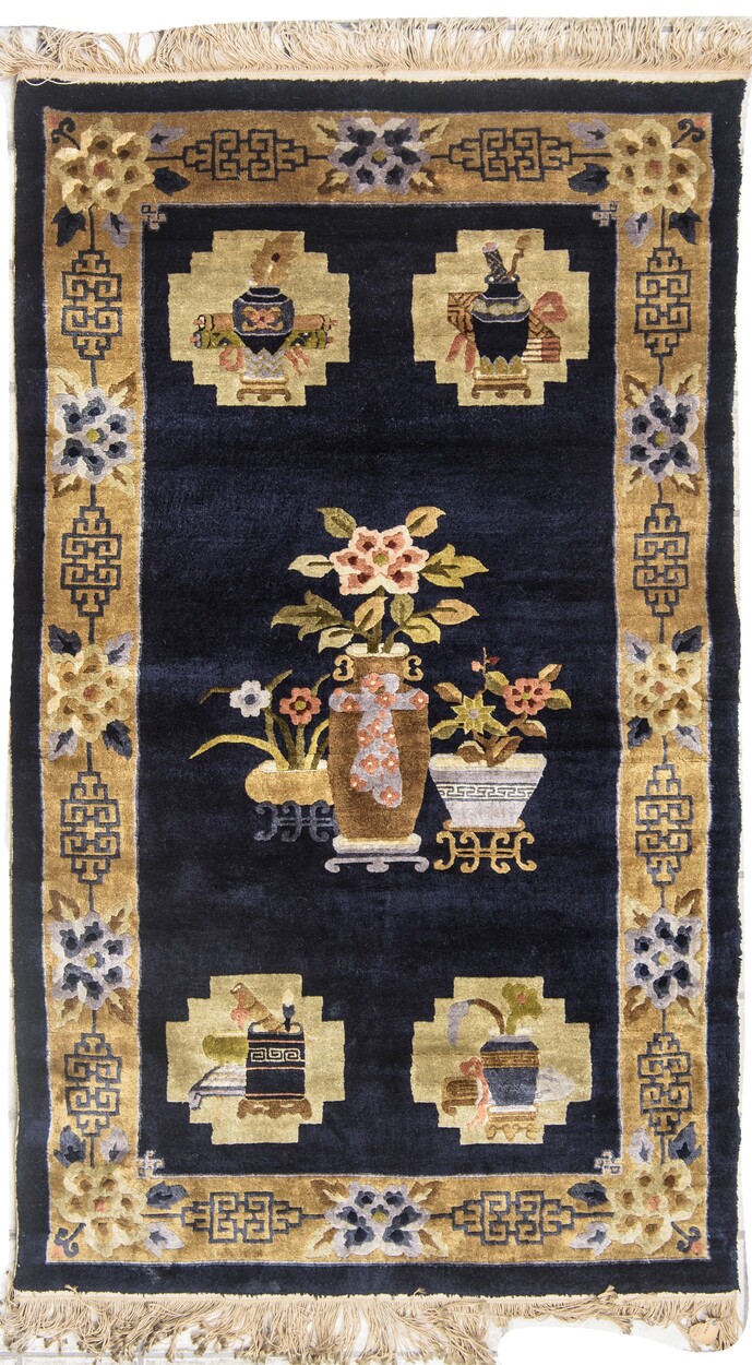 Precedente Lotto 267 Successivo Dams Casa D'aste - Via aurelia 61/63, 00165 Roma Arte Classica & Art Nouveau Arte Classica & Art Nouveau giovedì 20 marzo 2025 ore 15:00 (UTC +01:00) Tappeto Pao Tao Cina, XX secolo 155 x 92 cm In lana. Con motivi geometrici.
