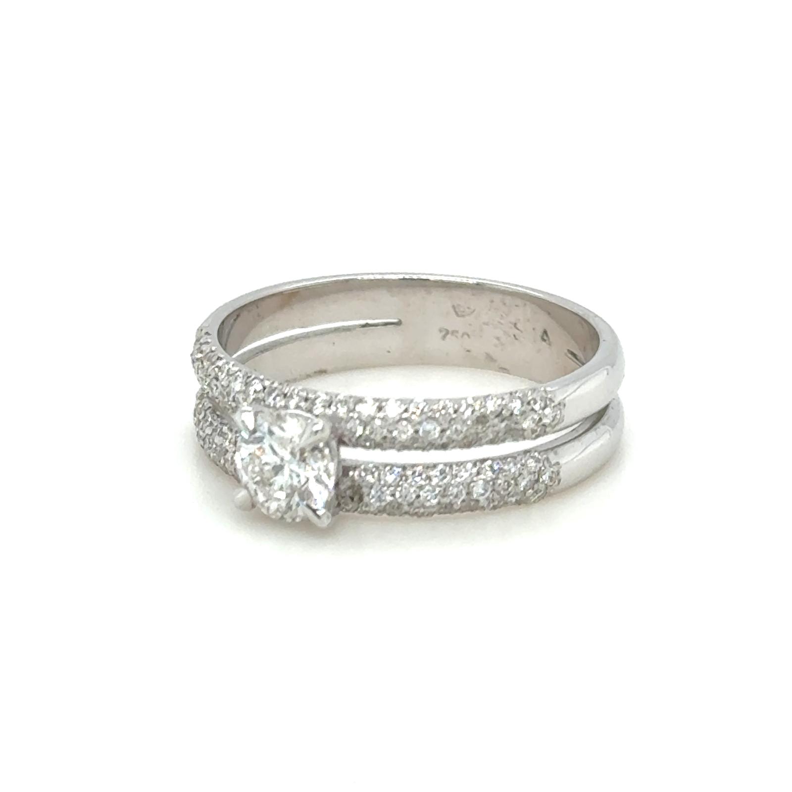 ANELLO IN ORO BIANCO 18k - 4.10 GR CON DIAMANTI: PEITRA CENTRALE BRILLANTE COLORE F PUREZZA VS1 1-0.50 CT + BRILLANTI LATERALI D VVS-VS 85-0.35 CT TAGLIA: 7 CERTIFICATO LD GR - DH-R771 - DH-R771