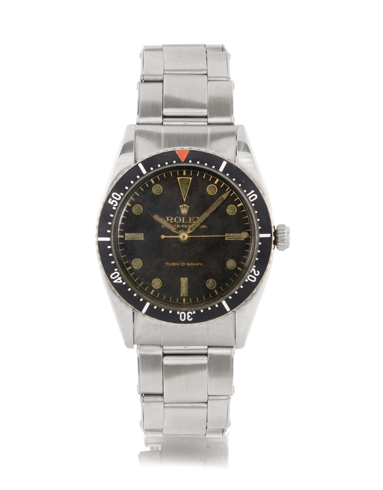 Cassa n. 953855 in acciaio con fondello e corona a vite, lunetta nera graduata e girevole. Quadrante nero con indici e lancette luminescenti, secondi al centro. Movimento a carica automatica. Bracciale Oyster in acciaio a maglie estensibili. Quadrante, cassa, movimento e bracciale firmati.