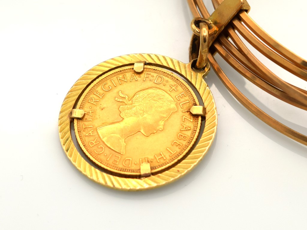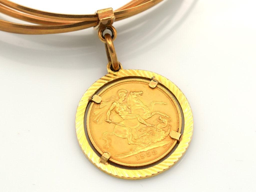 Sei bracciali rigidi in oro 750 con charm sterlina incastonata in oro