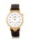 Cassa laminata oro giallo con oblò sul fondello, anse mobili, corona al 2 e pulsante al 6. Quadrante bianco con numeri arabi smaltati. Movimento con suoneria a richiamo delle ore e dei 5 minuti, carica automatica. Quadrante e movimento firmati, cassa numerata.