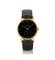 Cassa n. 650824 in oro giallo 18 kt con anse a goccia. Quadrante nero con numeri arabi smaltati, indici smaltati ed applicati, secondi al 6 (ristampato). Movimento n. 961961 a carica manuale. Quadrante, cassa e movimento firmati. Completo di cinturino, fibbia in oro giallo 18 kt ed astuccio originale moderno.