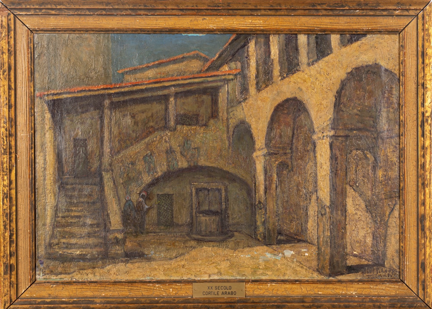 Hendrika van der Pek (Amsterdam 09/01/1867-Ankeveen 23/08/1926) - San Gimignano, il cortile del Palazzo Comunale