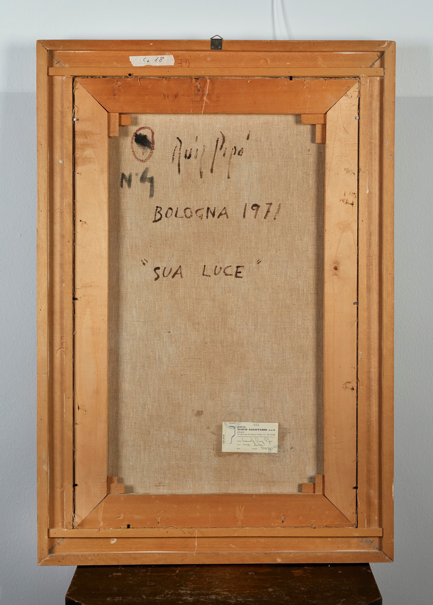 MANOLO RUIZ PIPO (Granada 1934 - Parigi 1997) “Sua luce”, 1971. Olio su tela. Cm 80x50. Opera firmata in basso a destra Ruiz Pipo. Al retro opera firmata, datata e intitolata Ruiz Pipo, Bologna, 1971, “Sua luce”. Al retro reca etichetta della Galleria Nuovo Sagittario, Milano.