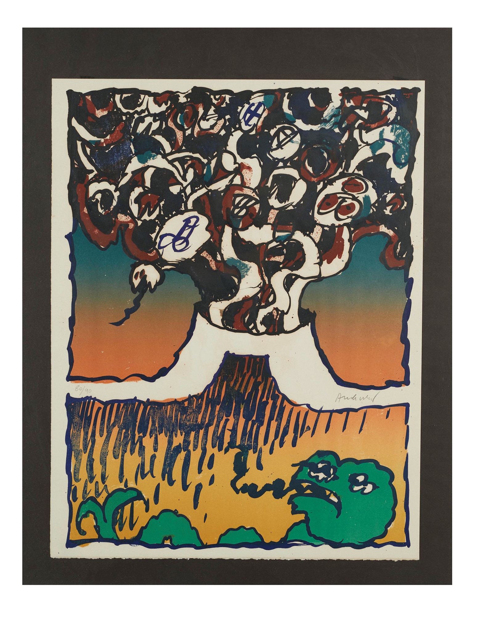 PIERRE ALECHINSKY (Schaerbeek 1927) "Vulcanologies II", 1970. Litografia a colori su carta. Cm lastra: 56x43. Opera firmata in basso a destra Alechinsky. Reca numeri di tiratura in basso a sinistra 80/90.
