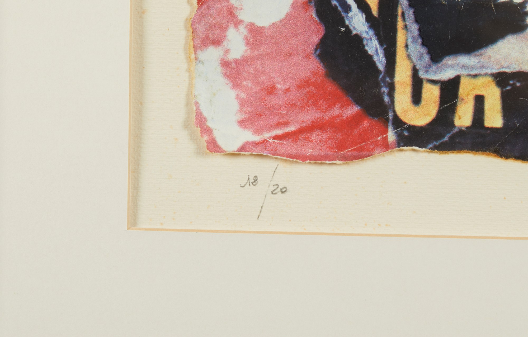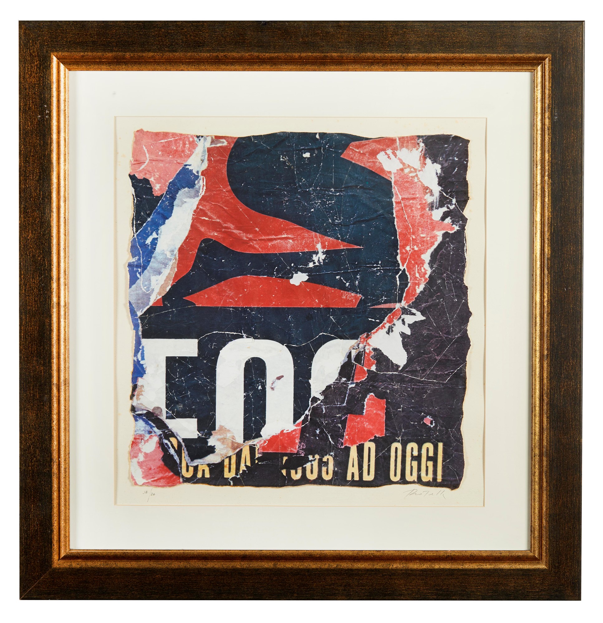 MIMMO ROTELLA (Catanzaro 1918 - Milano 2006) "Senza titolo", 1980. Decollage. Cm 50x46. Opera firmata in basso a destra Rotella. Reca numeri di tiratura in basso a sinistra 18/20.