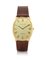 Cassa n. B4710 ellittica in oro giallo con vetro zaffiro. Quadrante champagne con numeri romani smaltati e data al 3. Movimento n. 139591 a carica automatica. Quadrante, cassa e movimento firmati. Fibbia in oro giallo 18 kt originale.