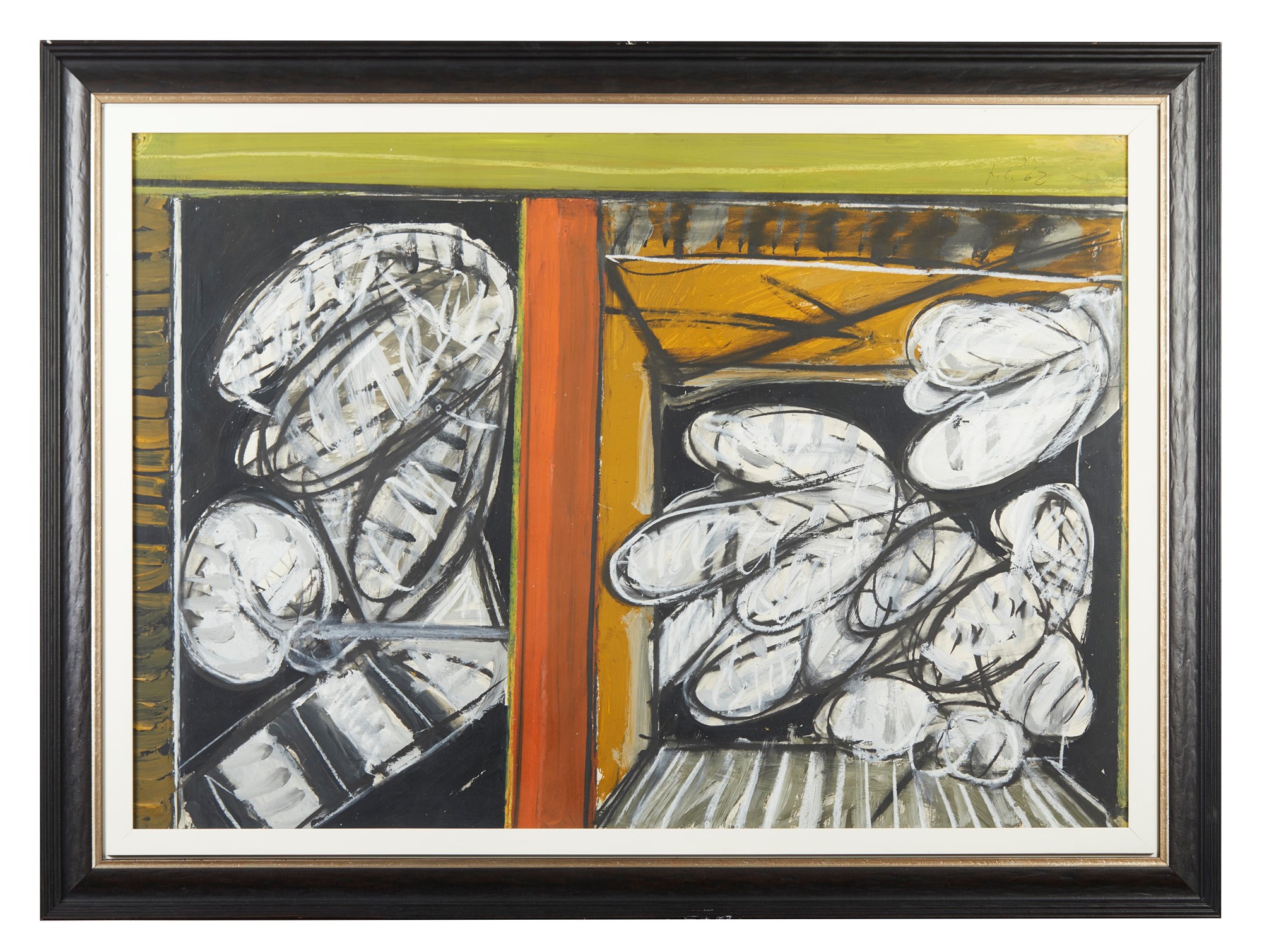 CONCETTO POZZATI (Vo' 1935 - Bologna 2017) "Composizione", 1962. Tempera e tecnica mista su cartoncino. Cm 70x100. Opera firmata e datata in alto a destra PC, '62. Opera acquistata dall'attuale proprietà direttamente dall'artista.