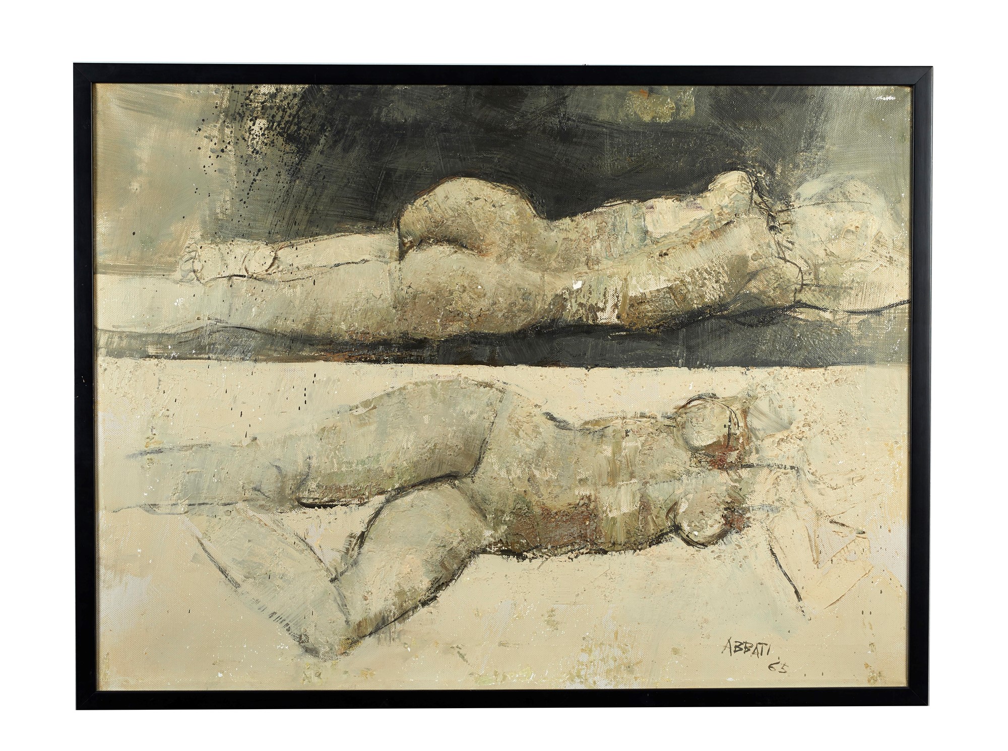 ALBERTO ABBATI (Faenza 1923 - Bologna 2011) “Donne distese”, 1965. Olio su tela. Cm 59x78. Opera firmata e datata in basso al destra Abbati, '65. (lievi difetti)