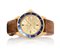 Cassa n. 6559256 in oro giallo 18 kt con fondello e corona a vite, lunetta blu graduata e girevole, vetro zaffiro. Quadrante champagne con indici in brillanti e zaffiri, lancette luminescenti, secondi al centro e data al 3. Movimento a carica automatica. Quadrante, cassa e movimento firmati. Completo di fibbia originale in oro giallo 18 kt.