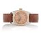 Cassa tonneau n. 52411 in acciaio con fondello e corona a vite, lunetta in oro rosa graduata. Quadrante rosa con indici, numeri arabi e lancette luminescenti, secondi al centro. Movimento a carica manuale. Completo di fibbia originale in acciaio.