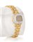 Cassa ellittica in oro giallo 18 kt con lunetta in oro bianco e brillanti. Quadrante dorato con indici applicati. Movimento a carica manuale. Bracciale in oro giallo 18 kt con maglie ad anelli. Quadrante, cassa, movimento e bracciale firmati.