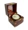 C. gilt brass and wooden box. D. silvered with Roman numerals, subsidiary seconds and power reserve at 12. M. Detent escapement, key winding.