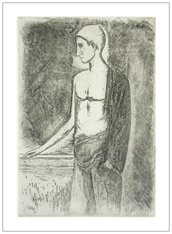 CARLO CARRA’ Quargnento 1881 – Milano 1966 Dopo il bagno Acquaforte su rame es.7/60. Firma sulla lastra in b. a s.; titolo in b. a d.; sul verso autentica e firma del figlio Massimo Carrà, Milano; sul foglio in b. a s. timbro a secco Luigi De Tullio Stampatore; in b. a d. Studio Carrà, Milano. (50 x 35 foglio – 30 x 20,4 inc.) L’opera fa parte della cartella “Opera Grafica di Carrà” pubblicata dall’Editore De Tullio di Milano e ogni esemplare è firmato sul retro dal figlio dell’artista Massimo Carrà. Lastra donata alla Calcografia Nazionale di Roma con l’impegno che non venga effettuata nessuna tiratura ulteriore.
