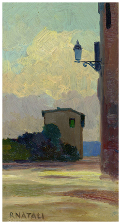 RENATO NATALI Livorno 1883 – 1979 Senza titolo Olio su tavola 26,5 x 14,5. Firma in b. a s.; sul verso timbro e firma galleria Chiellini, Livorno.