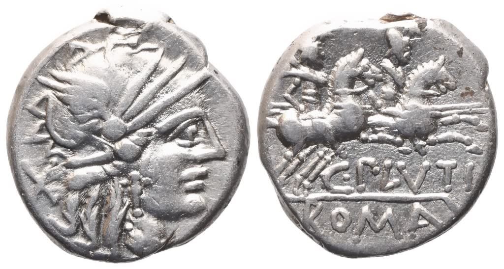 C. Plutius, Denarius, 121 BC; AR (3,90 g; 16,4 mm; 11 h)