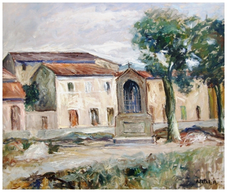 ALFREDO CATARSINI Viareggio 1899 – 1993 Immaginetta Olio su tavola 47 x 53. Firma in b. a d.; sul verso titolo + timbro “Dazio…” Comune di Viareggio.