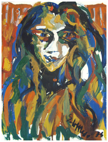 SILVIO LOFFREDO Parigi 1920 - Firenze 2013 Senza titolo 1974 Olio su cartone telato 40 x 30. Firma e data in b. a d.; sul verso firme, dedica e località.