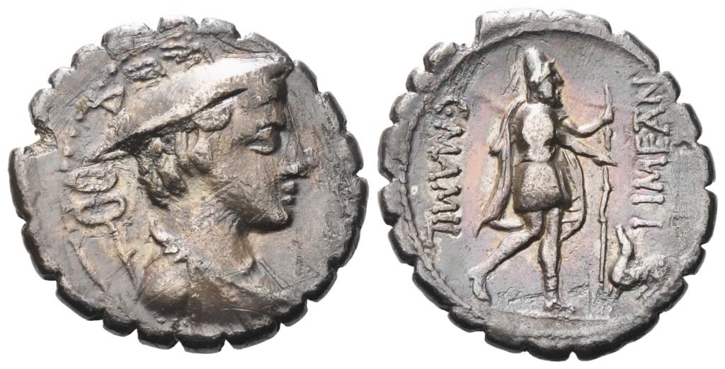 C. Mamilius Limetanus, Denarius serratus, 82 BC; AR (3,72 g; 18,4 mm; 3 h)