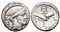Head of Pietas r.; behind, PIETAS downwards; banker's mark on Pietas' cheek; Rv. Clasped hands holding winged caduceus; below, ALBINVS·BRVTI·F. Crawford 450/2; Babelon (Postumia) 10; Sydenham 942. Good very fine. Lustrous metal.