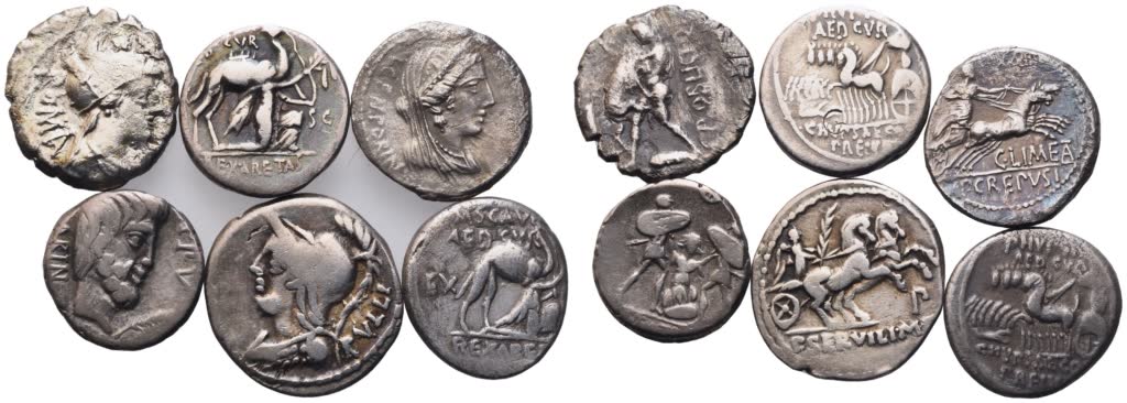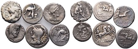 Precedente Lotto 484 Successivo Bertolami Fine Art - Máchova 838, Vinohrady 18, 120 00 Prague Auction 331 | RES PVBLICA RES PVBLICA giovedì 27 marzo 2025 ore 14:00 (UTC +01:00) Lot of 6 Roman Republican denarii Lot to be sold as is. No return.