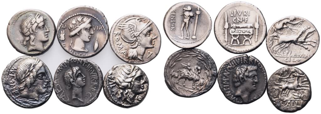 Precedente Lotto 485 Successivo Bertolami Fine Art - Máchova 838, Vinohrady 18, 120 00 Prague Auction 331 | RES PVBLICA RES PVBLICA giovedì 27 marzo 2025 ore 14:00 (UTC +01:00) Lot of 6 Roman Republican denarii Lot to be sold as is. No return.